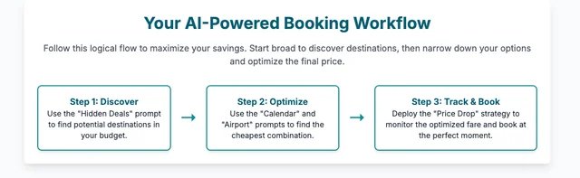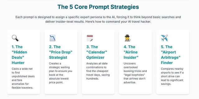 This prompt is designed to uncover the tricks that airlines don’t advertise. It’s less about specific searches and more about building your overall travel hacking knowledge.
